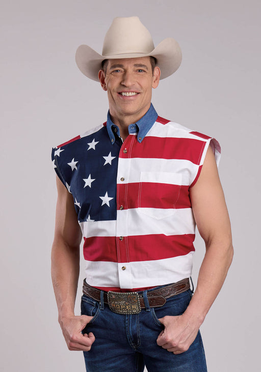 Roper Mens Multi-Color 100% Cotton American Flag BD S/L Patriotic Shirt