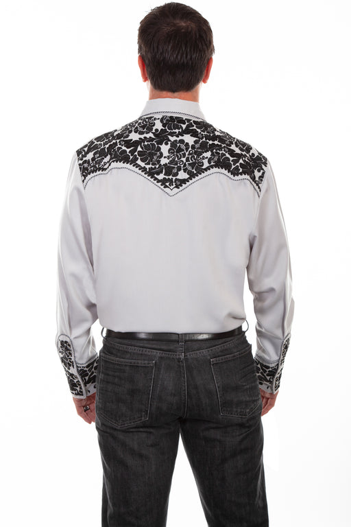 Scully Mens White Poly/Rayon Tooled Floral L/S Shirt