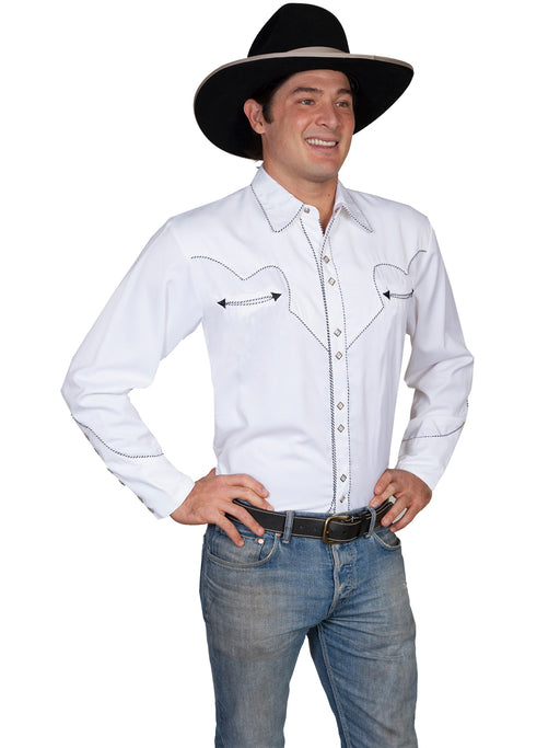 Scully Mens Western Contrast Stitching White 100% Cotton L/S Shirt