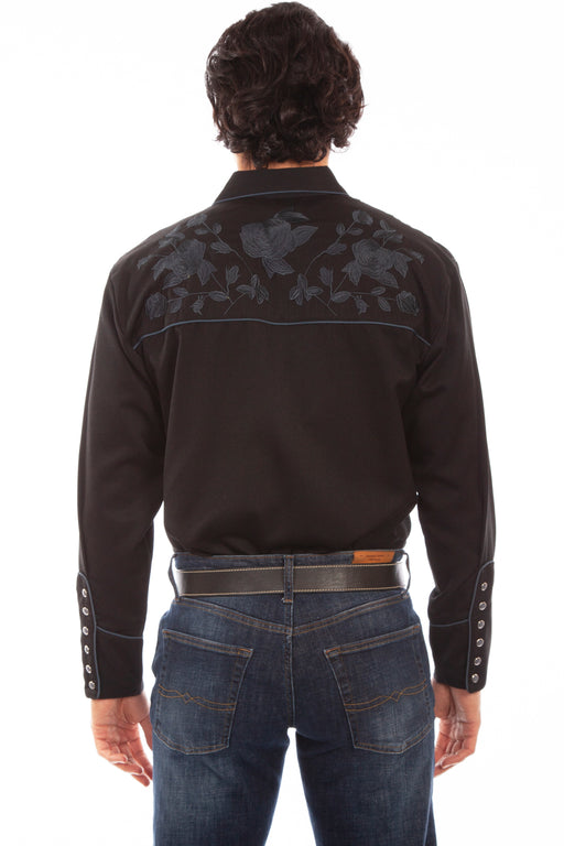 Scully Mens Black Poly/Rayon Tooled Floral L/S Shirt