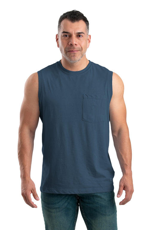 Berne Mens Space Blue Cotton Blend Performance Pocket Tee S/L