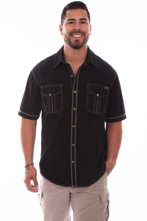 Scully Mens Black/Tan 100% Cotton Calypso S/S Shirt