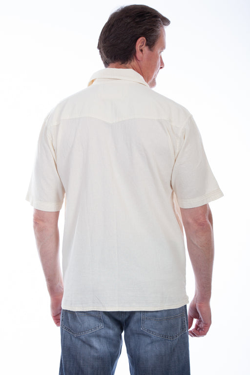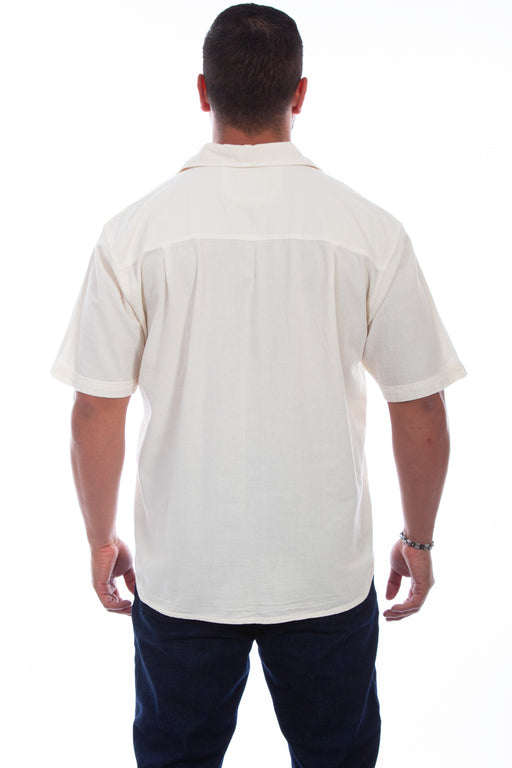 Scully Mens Ivory Distressed 100% Cotton Tropical S/S Shirt