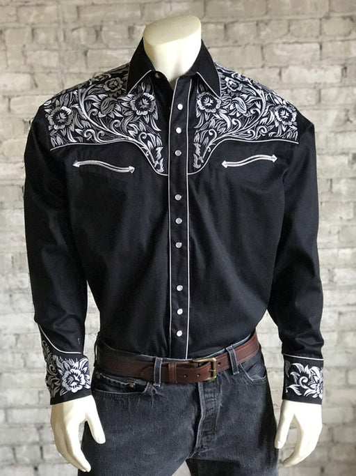 Rockmount Mens Black/Silver 100% Cotton Vintage Tooling Western L/S Shirt