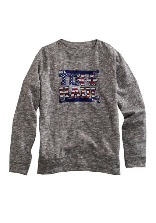• Tin Haul Mens Embroidered Flag Logo Grey 100% Cotton Sweatshirt