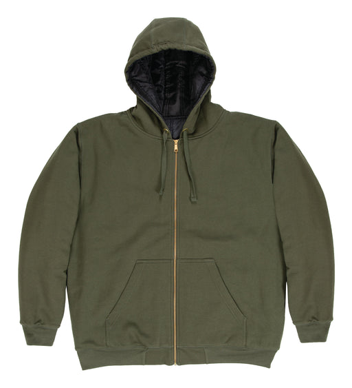 • Berne Mens Heritage Thermal-Lined Full-Zip Graphite Cotton Blend Hoodie