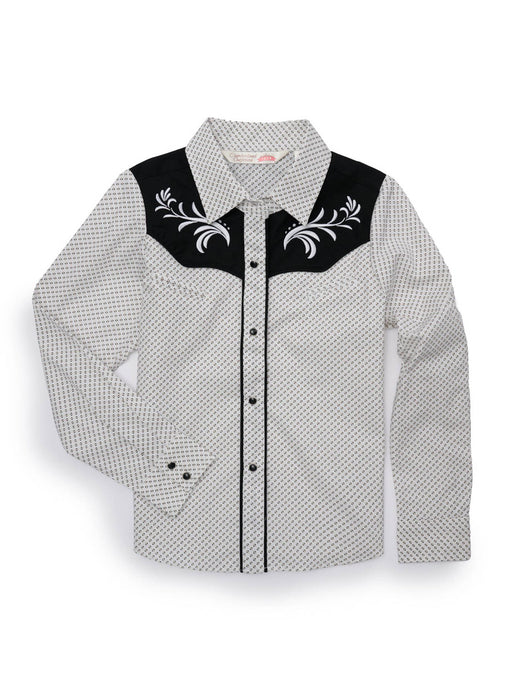 Ely and Walker Kids Girls Scroll Embroidery White/Black 100% Cotton L/S Shirt