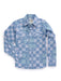 Ely and Walker Kids Boys Checker Patchwork Snap Denim Blue 100% Cotton L/S Shirt