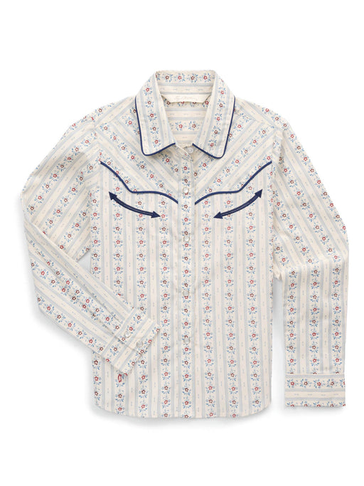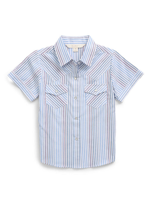 Ely and Walker Kids Girls Multi Stripe Western White Poly/Cotton S/S Shirt