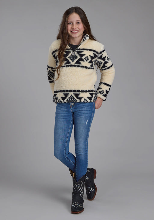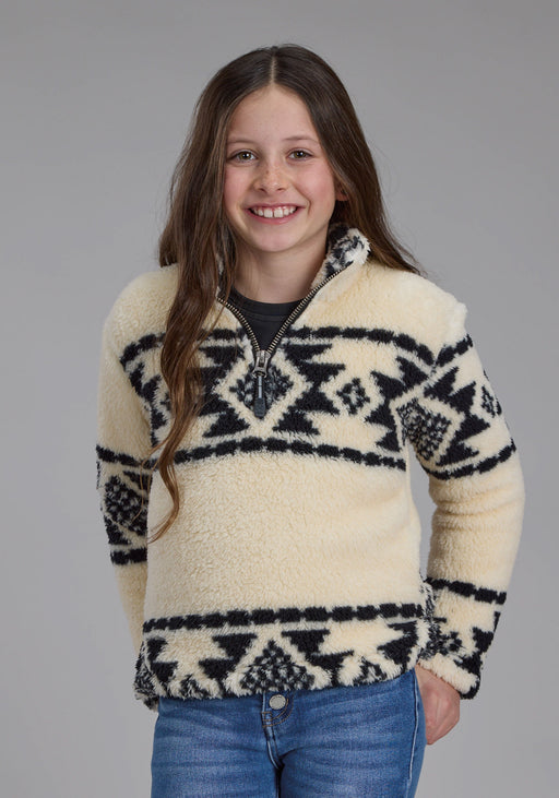 Roper Kids Girls Aztec Stripe Black/Cream 100% Polyester Fleece Jacket