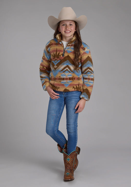 Roper Kids Girls Fuzzy Aztec Brown/Blue 100% Polyester Fleece Jacket