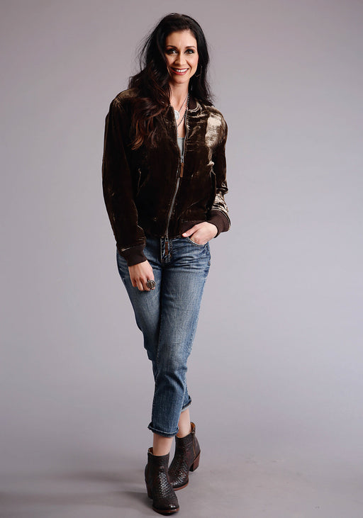 Stetson Womens Chocolate Bronze Rayon Velvet Bomber Jacket