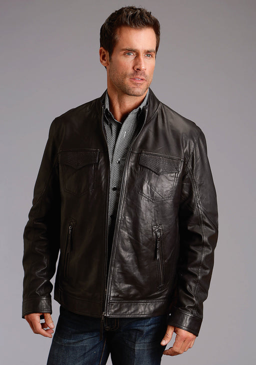 Stetson Faux Fur Mens Black Leather Smooth Jacket