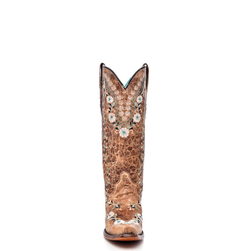Corral Womens Glow in the Dark Floral Distress Cognac Leather 13in Cowboy Boots