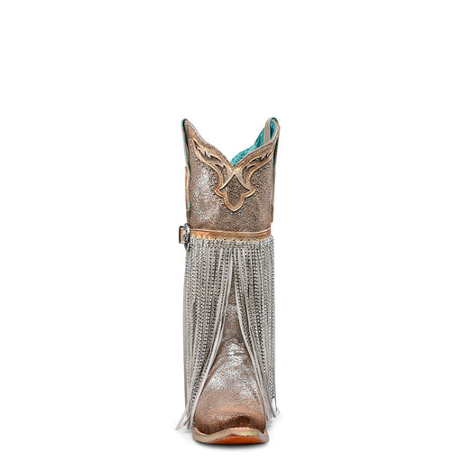 Corral Womens Gold Finish Crystal Fringe Silver Cowhide 13in Cowboy Boots