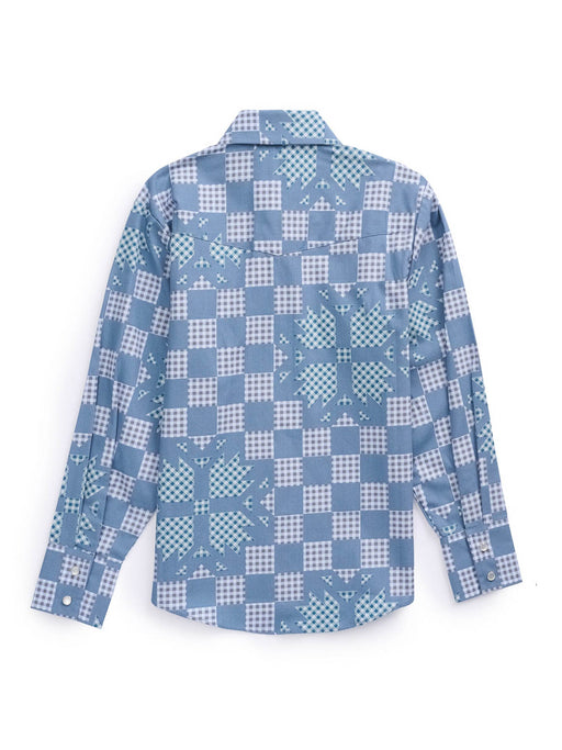 Ely and Walker Kids Boys Checker Patchwork Snap Denim Blue 100% Cotton L/S Shirt