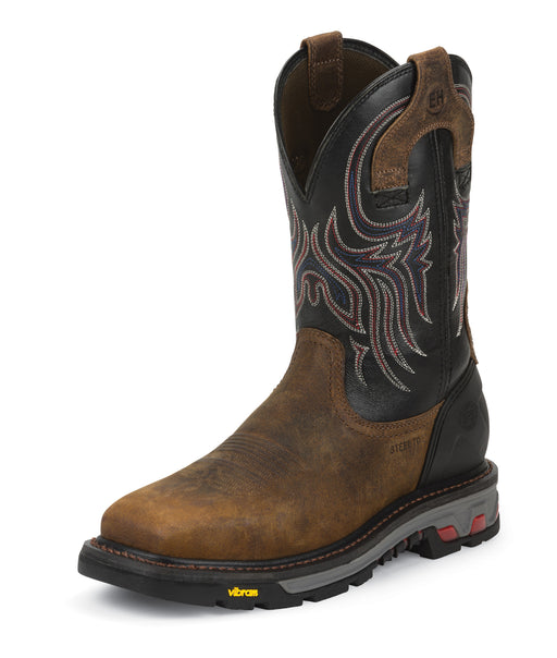 Justin Mens Bay Leather Work Boots Steel Toe Pull-On Gaucho