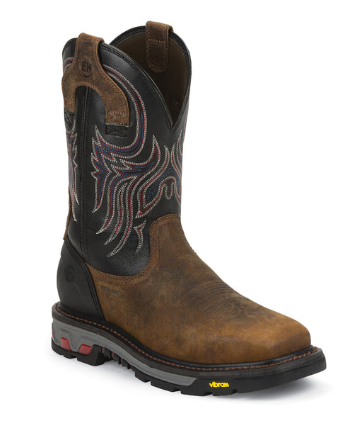 Justin 11in WP EH Mens Rustic Tan Stampede Rush Leather Work Boots