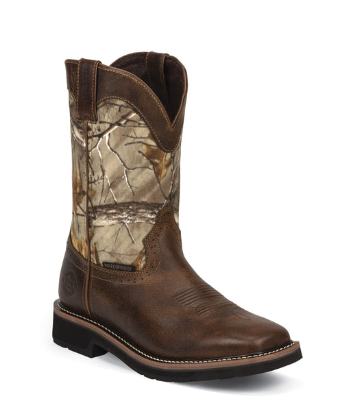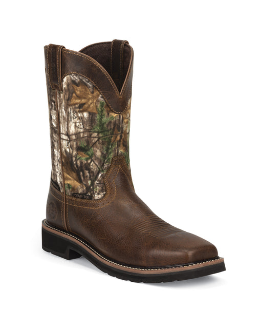 Justin Mens Tan Rugged Leather Work Boots WP Comp Toe Camo Stampede