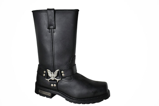 RideTec Mens 13in Harness Zipper Black Leather Motorcycle Boots