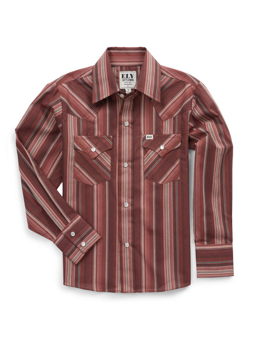 Ely and Walker Kids Boys Western Textured Stripe Burgundy Poly/Cotton L/S Shirt