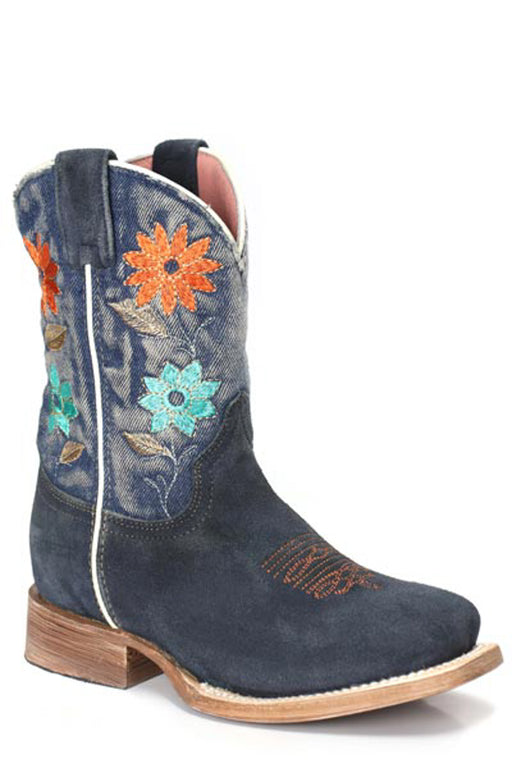 Roper Kids Girls Flower Power Denim Blue Suede 8in Cowboy Boots