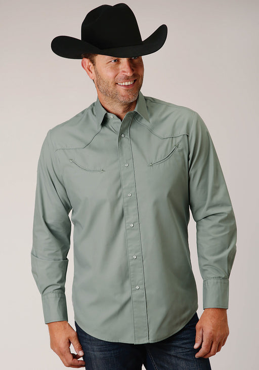Roper Mens Dusty Green Cotton Blend Longhorn L/S Barbwire Shirt