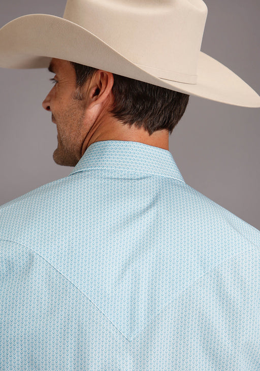 Stetson Mens Four Point Geo Blue 100% Cotton L/S Shirt
