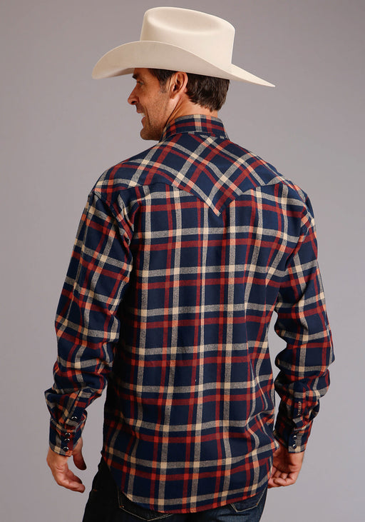 Stetson Mens Raw Boot Stitch Blue 100% Cotton L/S Shirt