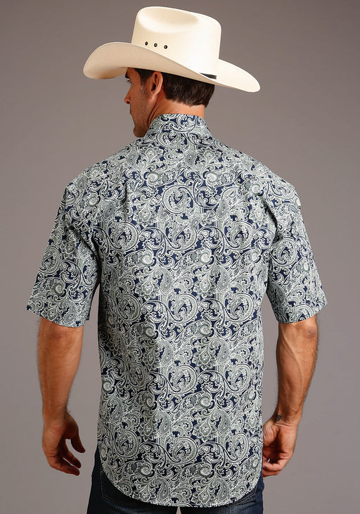 Stetson Mens Blue 100% Cotton Greenspring Paisley S/S Snap Shirt
