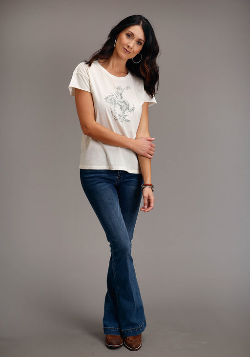 Stetson Womens Vintage White 100% Cotton Lady Bronc Rider S/S T-Shirt
