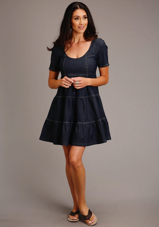 Stetson Womens Contrast Topstitch Dark Denim 76% Cotton/23% Polyester/1% Spandex S/S Dress