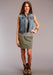 Stetson Womens Five Pocket Raw Edge Olive 100% Cotton Skirt