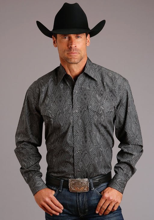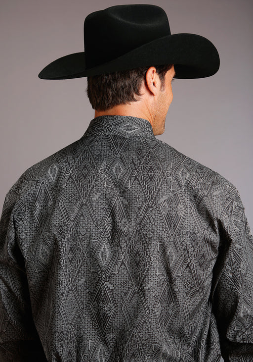 Stetson Mens 2517 Smoke Diamonds Grey 100% Cotton L/S Shirt