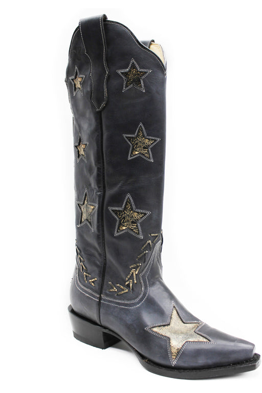 Stetson Womens Big Star Black Leather Cowboy Boots