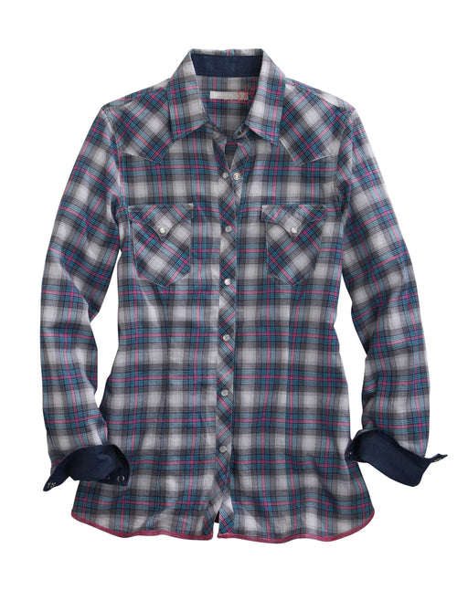 Tin Haul Womens Blue/Purple 100% Cotton Star Ombre Plaid L/S Shirt