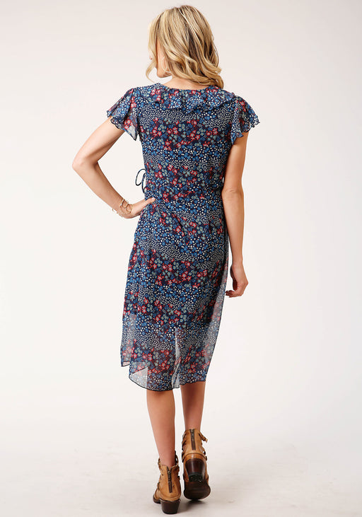 Roper Womens Ditzy Floral Blue 100% Polyester S/L Dress
