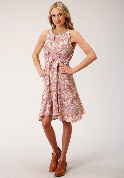 Roper Womens Spring Paisley Yellow 100% Polyester S/L Dress