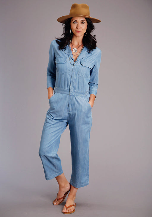 Stetson Womens Blue 100% Tencel Denim Notch Collar Jumper