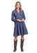Roper Womens Two-Tier Floral Medium Blue 100% Cotton L/S Dress