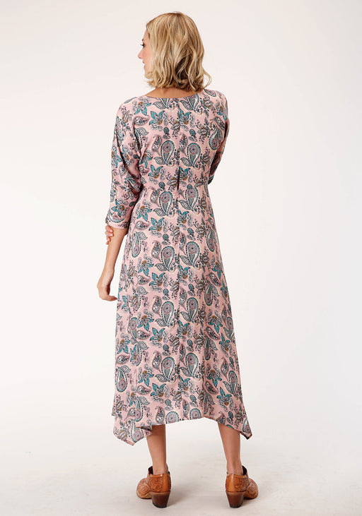 Roper Womens Pink Rayon/Nylon Prairie Paisley S/S Dress