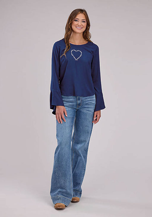Roper Womens Barbwire Heart Blue 100% Rayon L/S Tunic