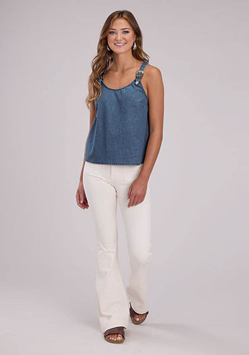 Roper Womens Belt Buckle Strap Denim Blue 100% Cotton S/L Tank Top