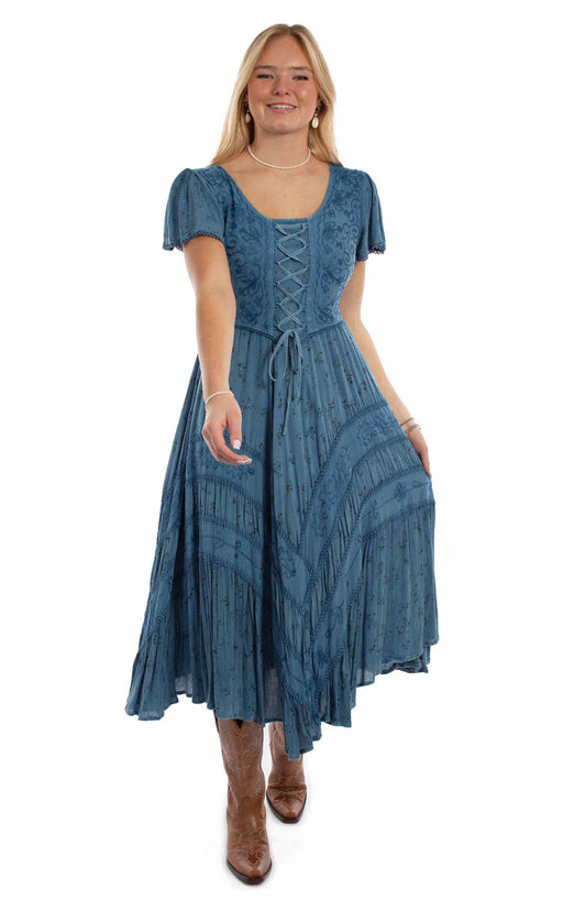 Scully Womens Fabric Lace-Up Tie Blue 100% Rayon S/S Dress
