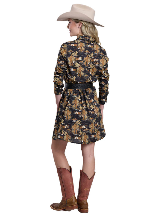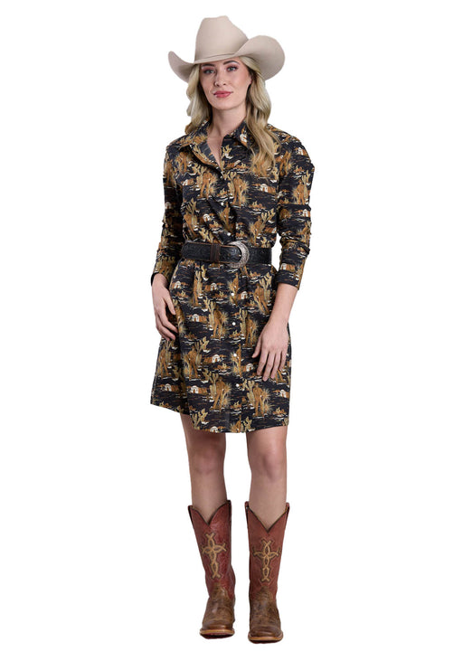Tin Haul Womens Cowboy Print Western Black 100% Cotton L/S Dress