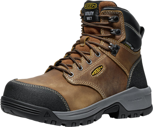 Keen Utility Womens Evanston 6in WP Int Met CT Bison/Black Leather Work Boots