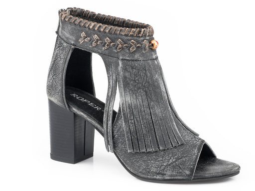 Roper Womens Sanded Black Leather Bettina Peep Toe Heels