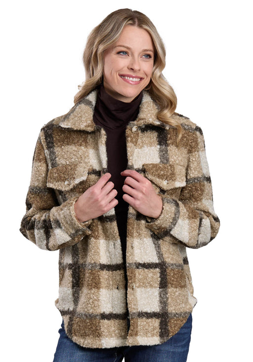 • Roper Womens Oversized ShirtJac Brown/Tan 100% Polyester Fleece Jacket