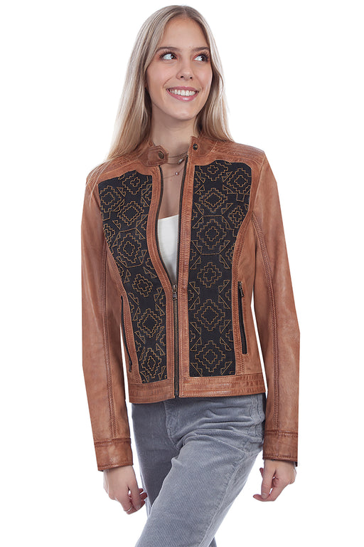 Scully Womens Cognac Lamb Leather Beaded Panel Jacket