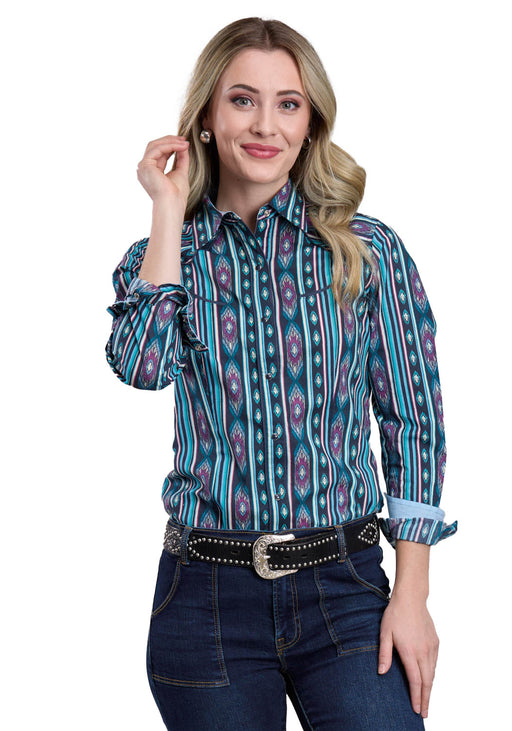 • Roper Womens Aztec Diamond Geo Blue 100% Cotton L/S Shirt